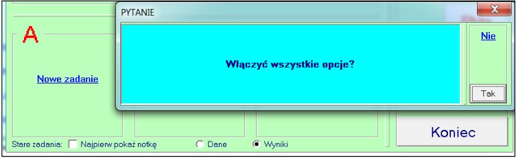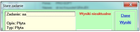 Jeśli zadanie z nieaktualnymi wynikami będzie wybierane z listy historii, to zawsze będzie wywoływany moduł Dane, niezależnie od preferencji ustawionych na dolnym pasku.