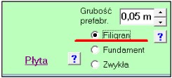 Dla płyty typu Filigran będzie można wpisać grubość prefabrykatu.