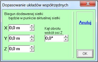 Przy zadawaniu podłoża, po wybraniu czytania podłoża Winklera z pliku, pokaże się plansza synchronizacji układów współrzędnych. Jak widać można nawet mieć obrócone siatki.