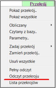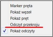 Dla modeli prętowych, w module Wyniki, do menu Pokaż dodano opcję odczytu przekroju.