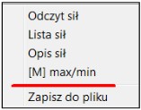 Przy zadawaniu sił węzłowych, polowych, liniowych, obciążeń ciągłych i szkód górniczych dodano do menu pozycję [M] max/min.