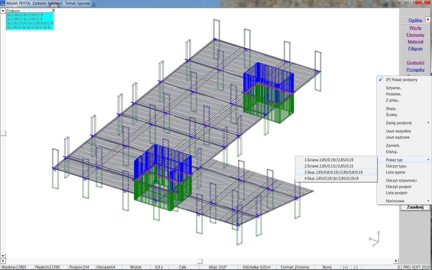 Model płyty może składać się z obszarów o różnej grubości i różnych materiałach, co pozwala na analizę np. stropów żelbetowych opartych na dźwigarach stalowych lub drewnianych. Po zdefiniowaniu osi oraz szerokości belki (w tym szerokości współpracującej), program automatycznie wprowadza do modelu belki teowe, zlicowane z górną lub dolną powierzchnią płyty. Podpory sprężyste definiuje się za pomocą parametrów odpowiadających rzeczywistej sztywności słupów lub ścian.