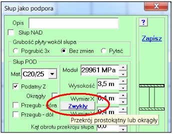 Na planszy opisu podpory typu Słup dodano przełącznik pozwalający wyróżnić miejsca z podporą tego typu.