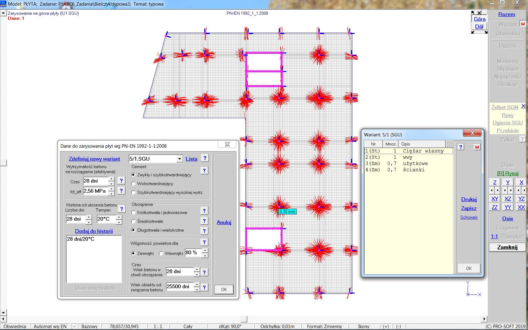 Wyniki mogą być zestawiane w warianty metodą superpozycji ze skalowaniem składników. Każdemu wariantowi (bazowemu lub dodatkowemu) można nadać atrybut obciążenia stałego, zmiennego lub wykluczającego się. Obwiednia domyślnie obliczana jest automatycznie wg Eurokodu 0 (wzory 6.10a i 6.10b), przy zachowaniu możliwości liczenia wg zasad normy PN-B.